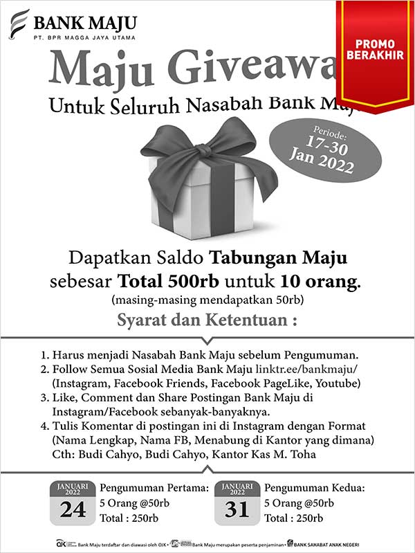 Dapatkan Saldo Tabungan Maju sebesar Total 500rb untuk 10 orang. (masing-masing mendapatkan 50rb)